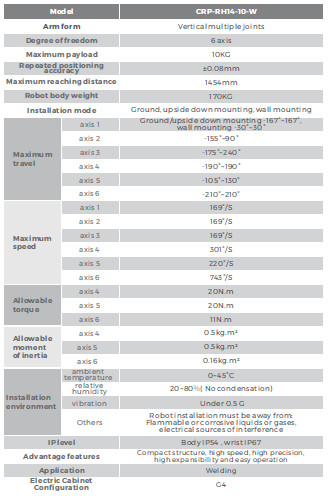 ROBOT CÔNG NGHIỆP CRP – MODEL CRP-RH14-10-W– ỨNG DỤNG HÀN